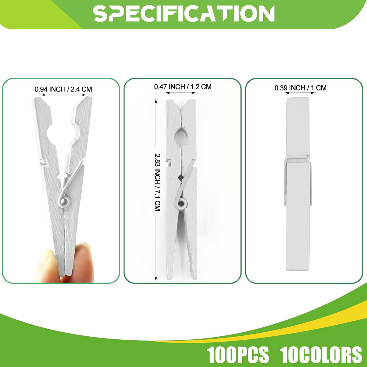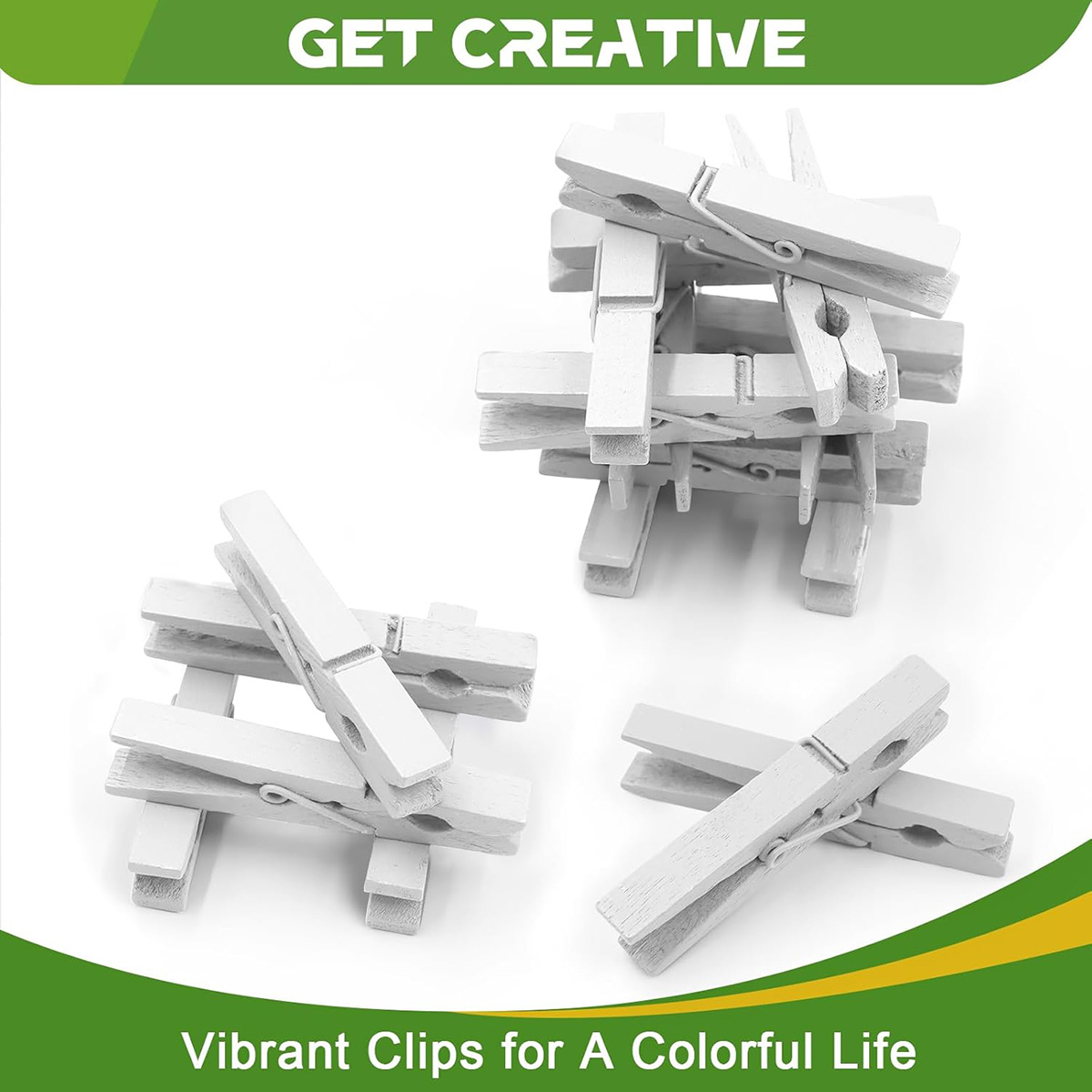 100 Pack Clothes Pins Wooden, White Clothespins Wood, Clothing Pins Clips – Pure White