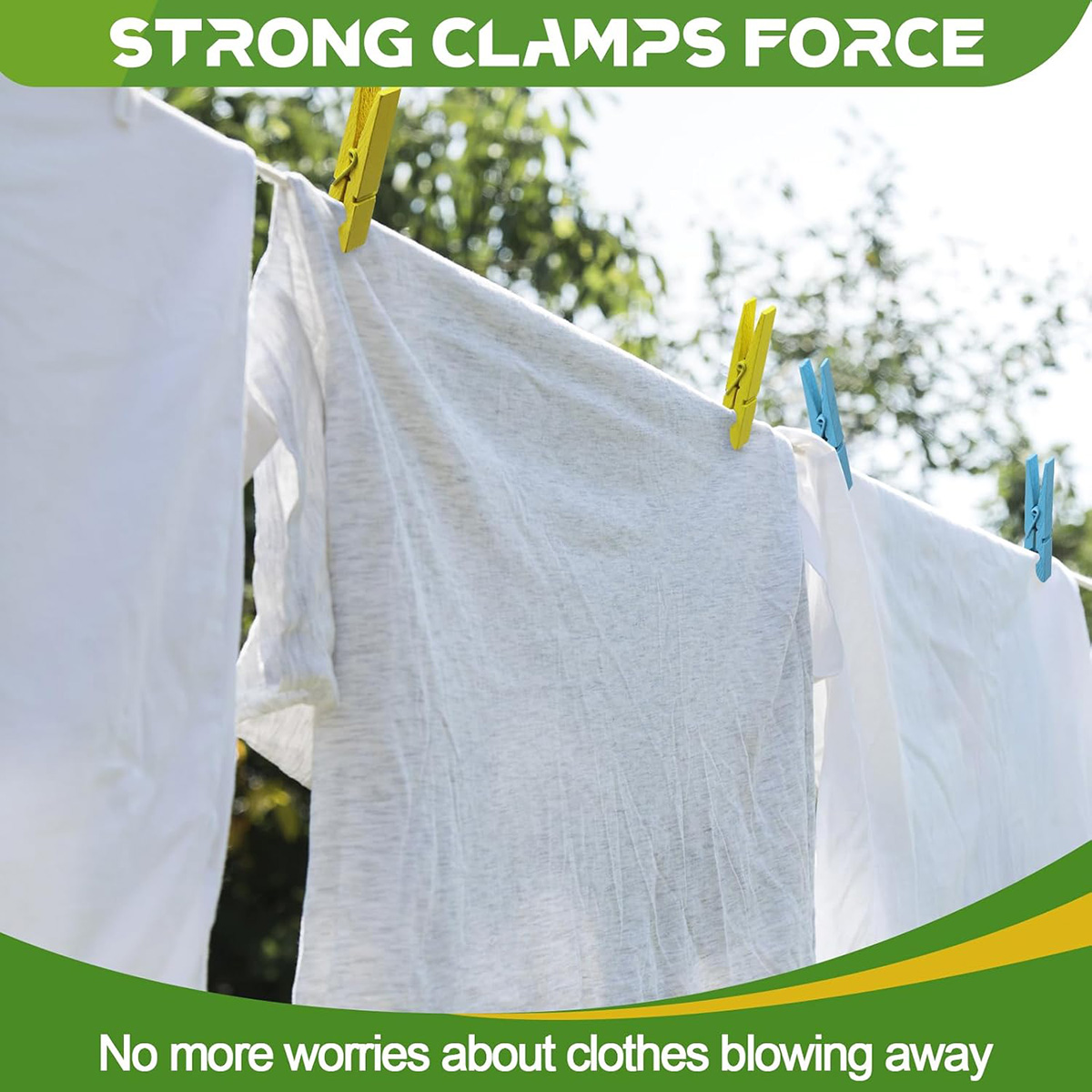 - Strong Grip: The sturdy and anti corrosion spring of these colorful wooden clothespins provides a powerful clamping force. With a size of 2.83 inches, you can use the clothes pin to hang garments like sweaters, towels, jeans, and more