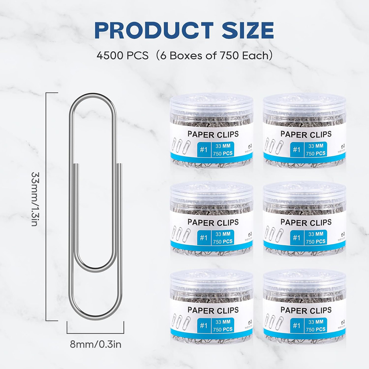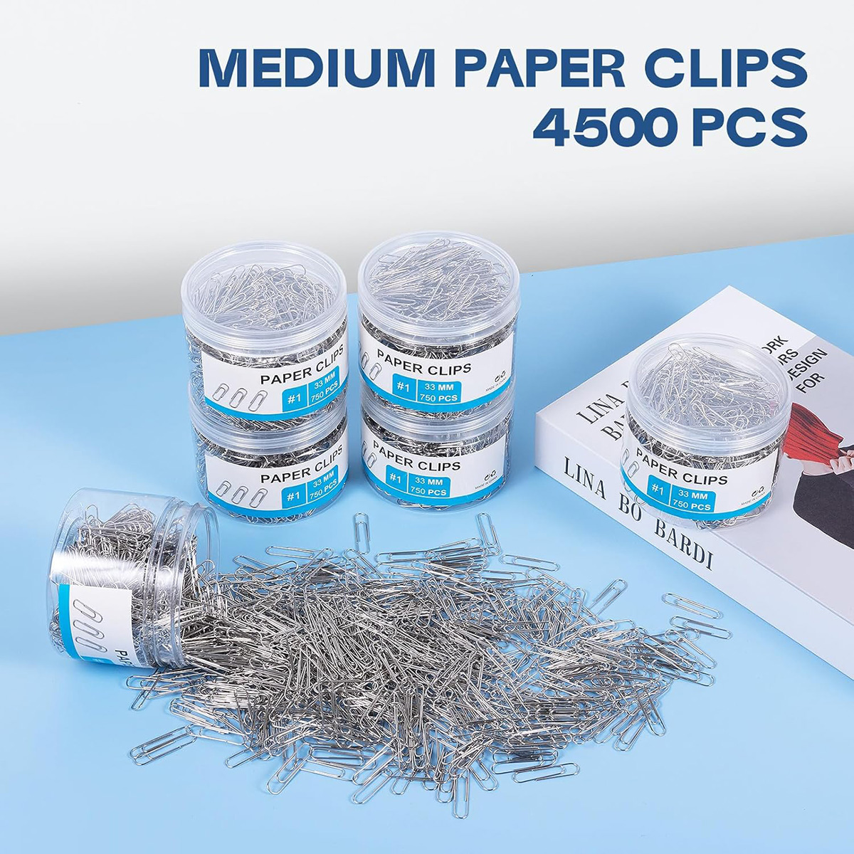 4500 Pcs Paper Clips Bulk Paperclips Medium: 1.3 Inches Paper Clip, 750 Pcs x 6 Boxes, Silver