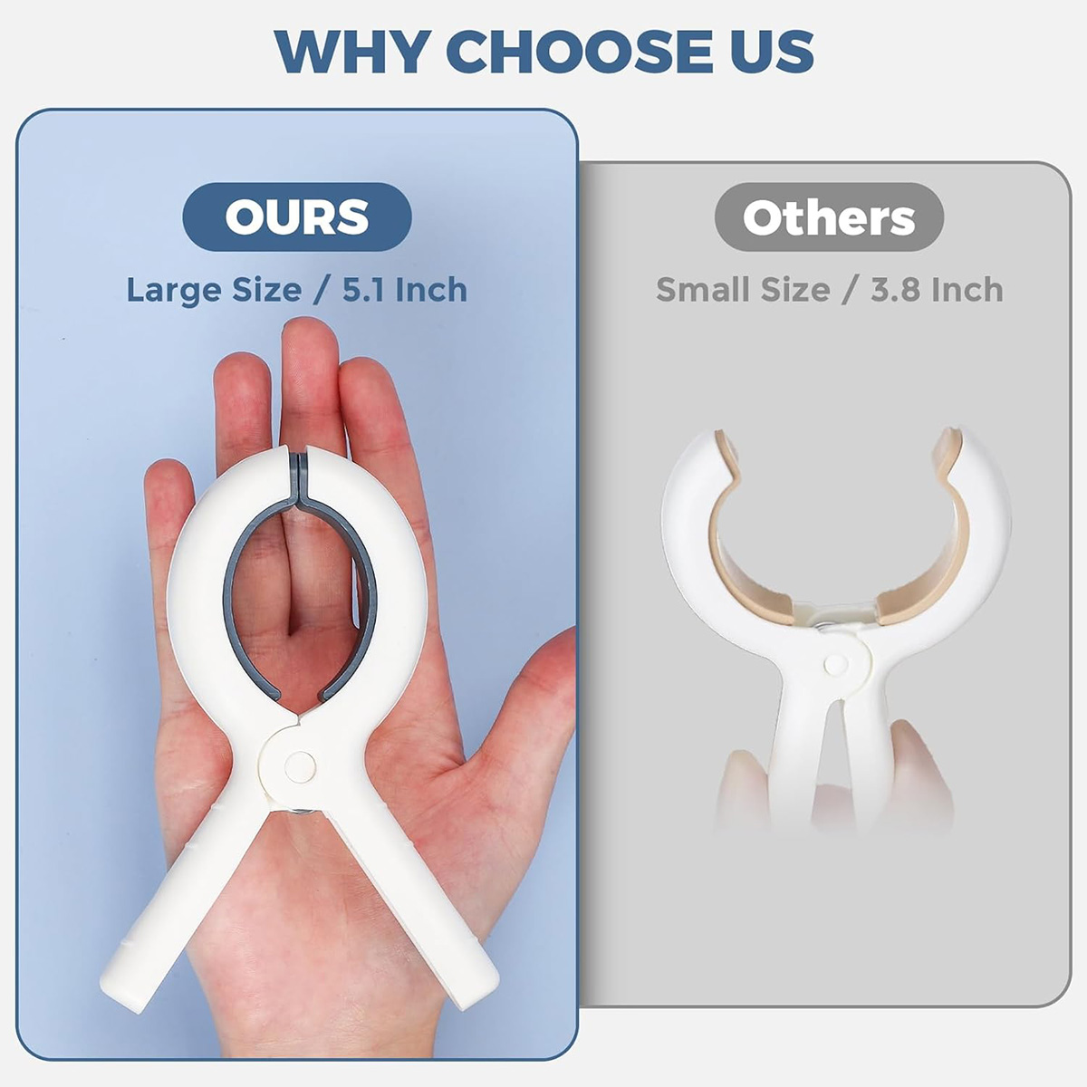 - Extra Size: Our upgraded beach towel clip is an essential beach accessory.With a length of five inches and a wide opening, these large clips can securely hold thick blankets and beach towels in windy beach conditions, allowing you to fully relax and enjoy your time at the beach without worrying about towels falling off